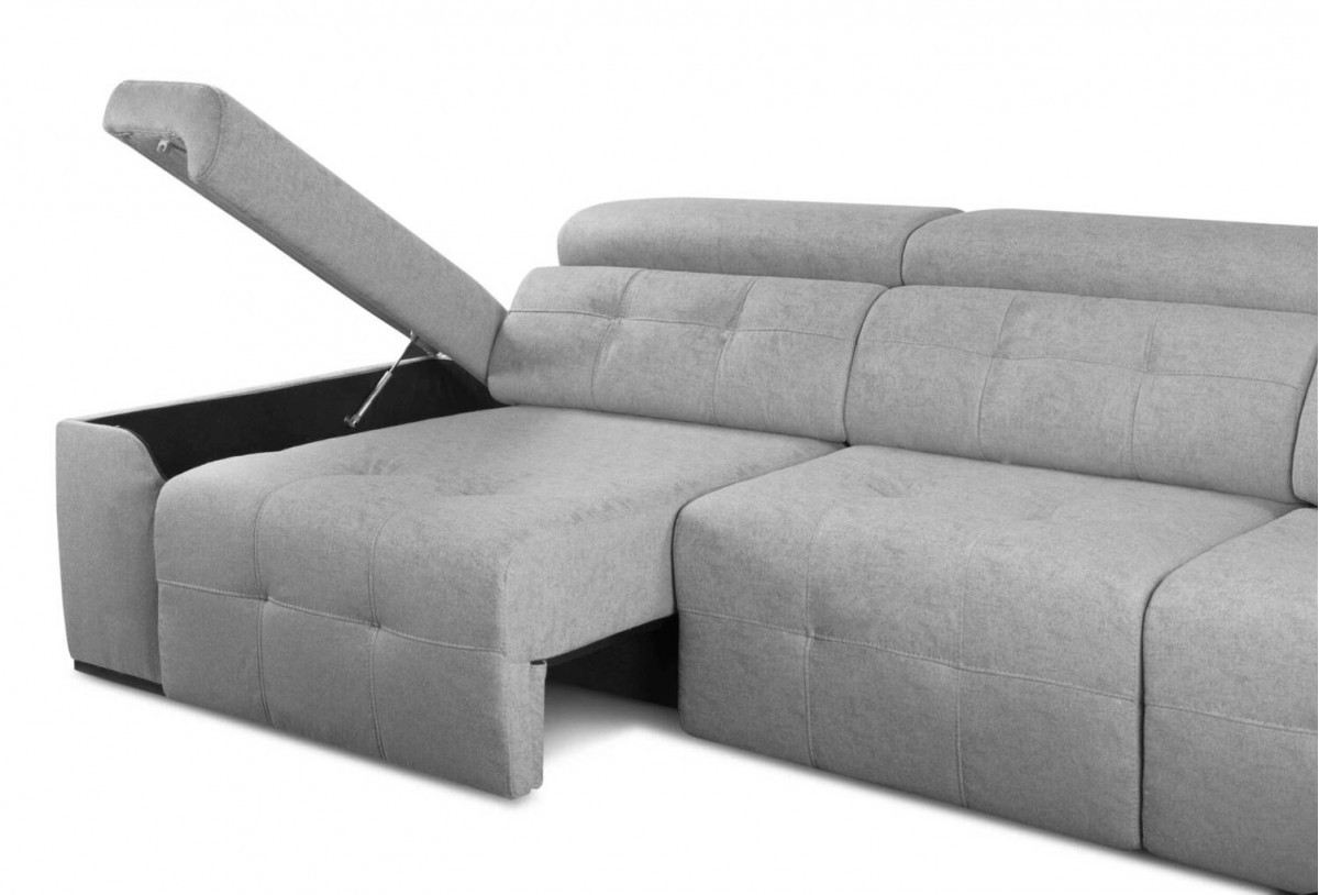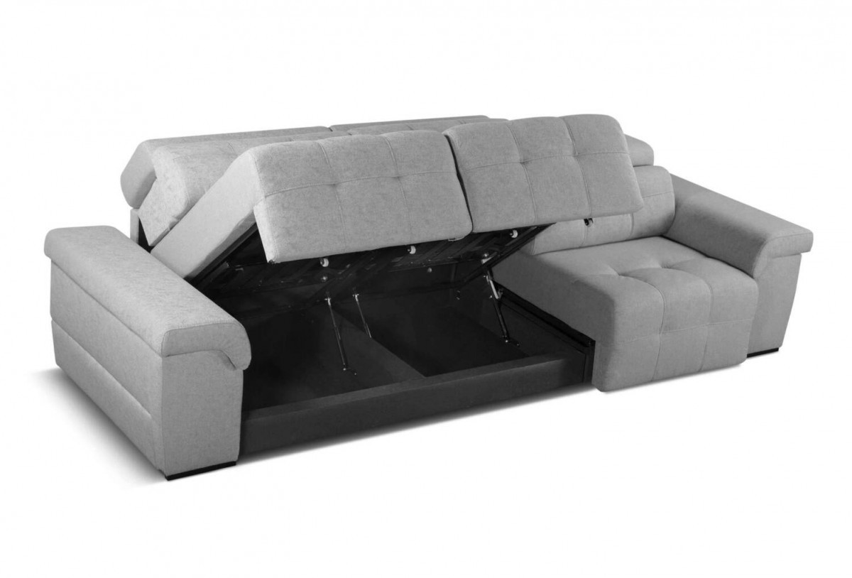 El sofá Miko dispone de un mecanismo abatible con arcón.